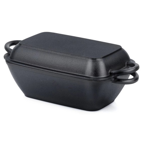 ⭐ Brytfanna żeliwna 2w1 - Brytfanna z pokrywką, która stanowi również osobne naczynie do zapiekania. Brytfanna doskonale nadaje się do pieczenia, duszenia i zapiekania mięs, warzyw, ziemniaków. Po zdjęciu pokrywki uzyskujemy dwa oddzielne naczynia. Wymiary zewnętrzne brytfanny bez pokrywki: 37,5 x 19 x 9,5 cm, wysokość z pokrywką wynosi 14 cm, a pojemność 3,5 l. Pokrywka z powłoką grillową ma wymiary 37,5 x 19,5 x 5 cm i pojemność 1,5 l.