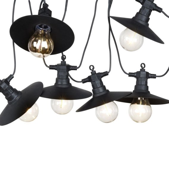 • ŻARÓWKI LED - Girlanda obejmuje 6 przezroczystych żarówek typu LED wykonanych z tworzywa dodatkowo posiada czarny klosz. W każdej żarówce umieszczono 1 żarnik LED o ciepłej barwie. Klosz ma średnicę 15 cm, żarówka ma średnicę 6 cm i długość 7 cm.