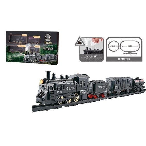 Realistyczna para wodna: Pociąg Retro posiada unikalną funkcję - po nalaniu wody do lokomotywy, zabawka wytwarza parę wodną, tworząc niesamowity efekt przypominający prawdziwy parowóz. To idealny sposób, by wprowadzić dzieci w fascynujący świat kolejnictwa i technologii!