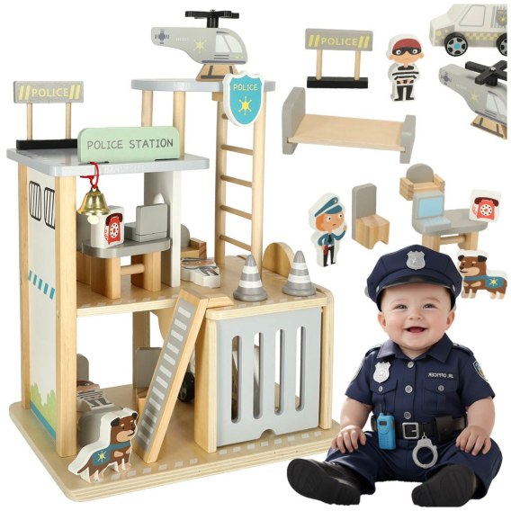 całości wykonany z drewna - posterunek policji oraz akcesoria są wykonane z