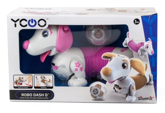 Robot stworzony z myślą o małych miłośniczkach czworonogów! Wesoły, zdalnie sterowany piesek potrafi wiele i z pewnością stanie się wiernym towarzyszem zabaw. Robot reaguje na dotyk, potrafi poruszać się we wszystkich kierunkach i wykrywać przeszkody. Potrafi też tropić pilot. Wystarczy uruchomić odpowiednią funkcję, przeturlać pilot po podłodze, a Robo Dash D pójdzie w jego kierunku. Gdy weźmiesz pilot do ręki i przemieścisz się z nim, psiak podąży za Tobą!