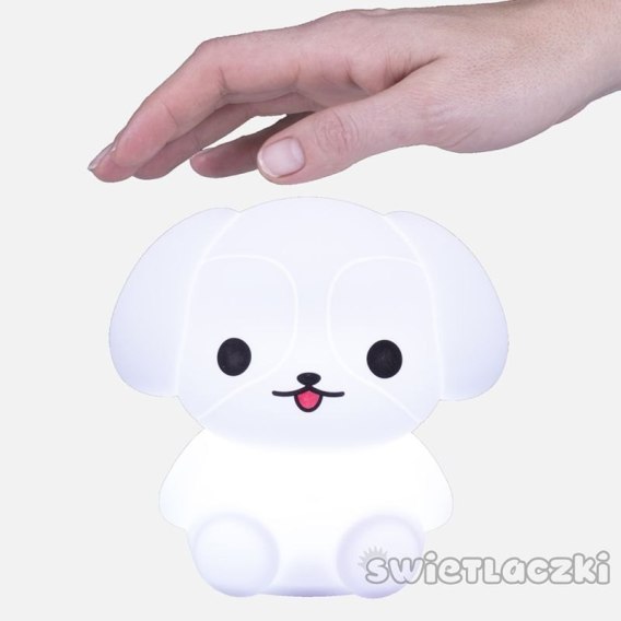 Ciekawy kształt zwierzątka sprawia, że lampeczka może być również najlepszym przyjacielem i zabawką malucha. Lampka jest przyjemna i miękka w dotyku.