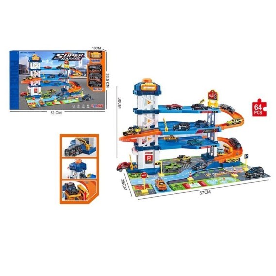Ekscytująca konstrukcja: Trzy piętra pełne tras, ramp i miejsc parkingowych pozwalają na różnorodną i dynamiczną zabawę.