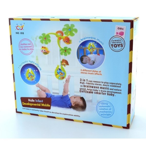 Wbudowany wysokiej klasy głośnik bardzo ładnie odtwarza dźwięki. Efekty świetlne o stonowanej barwie idealnie budują harmonijny nastrój w pokoju dziecka. Podwieszane zabawki obracają się o 360°. Ramię z karuzelą jest całkowicie odpinane, a dolną część możemy wykorzystać w dowolnym miejscu. Do montażu można użyć pasów z automatyczną blokadą.