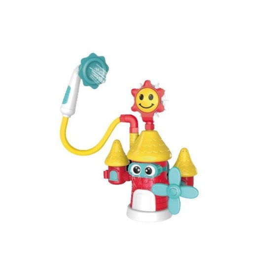 Wejdź do królestwa wodnej zabawy i odkryj wszystkie jego niespodzianki! Ten kolorowy zamek umożliwia zabawę aż na 4 różne sposoby, a to za sprawą dołączonych do zestawu końcówek, które można zamieniać ze sobą miejscami. Każda z końcówek tryska wodą w inny sposób. Znajdziemy tu uśmiechnięte słoneczko, wiatraczek oraz dwie końcówki prysznicowe, krótszą i dłuższą, z wężykiem. Wszystko co musisz zrobić to umieścić zabawkę w wodzie, aby była zanurzona na głębokość ok. 6cm i nacisnąć przycisk, znajdujący się na szczycie największej wieży. Przekonaj się jak wesoła może być kąpiel!