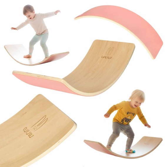 DREWNIANA DESKA DO BALANSOWANIA DLA DZIECI Z FILCEM RÓŻOWA - ĆWICZENIE PROPRIOCEPCJI