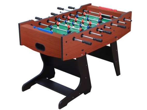 Piłkarzyki to gra mająca element rywalizacji. Przynosi rozrywkę i zabawę zarówno dzieciom, jak i dorosłym. Składany stół w kolorze brązowym przeznaczonym do tego celu, na pewno idealnie sprawdzi się podczas spędzania czasu z rodziną lub przyjaciółmi. Stabilną i solidną konstrukcję zapewnia wykonanie z trwałej i mocnej płyty MDF, a tablica do ręcznego ustawiania wyników pomaga kontrolować ilość goli. Gra jest tak skonstruowana, że pozwala na rzut piłką z każdej strony boiska.