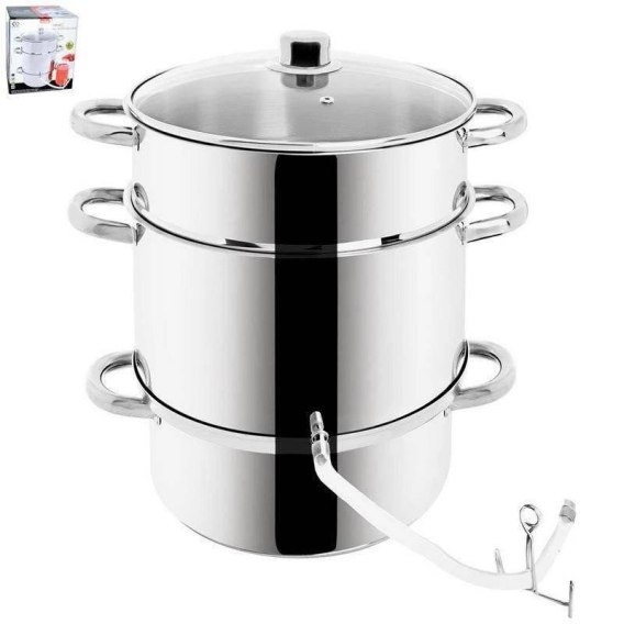 Stalowy sokownik to wszechstronne narzędzie do przygotowywania zdrowych soków z różnego rodzaju owoców. Z jego pomocą idealnie oddzielimy sok i miąższ z owoców. Pozostały miąższ można wykorzystać i zrobić z niego pyszny dżem. Sokownik może służyć także jako parowar do przygotowania zdrowych potraw i warzyw gotowanych na parze. Niezwykle solidnie wykonany z najwyższej jakości materiałów. Dobrze wyprofilowany kształt garnka, pozwala na łatwe czyszczenie.